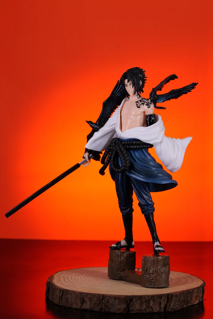 - Pose: Commanding standing posture with sword drawn, crow elements integrated into the design for a humanoid yet ethereal feel