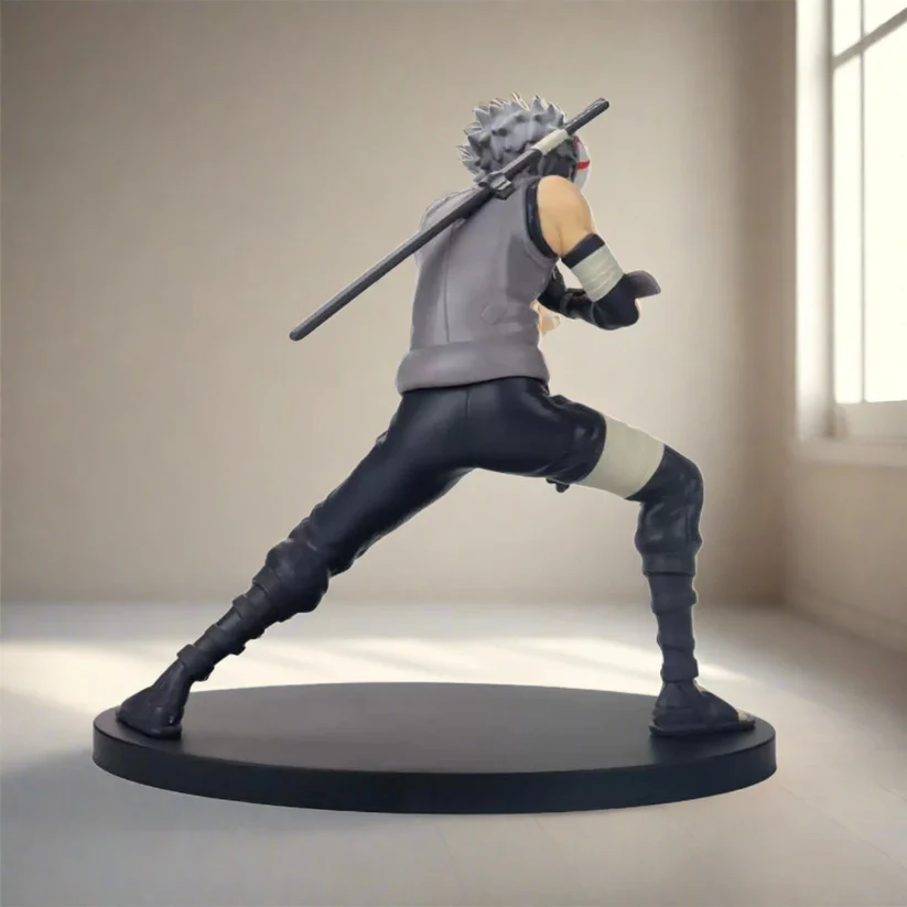 • Pose: Mid-attack lunge with sword extended and kunai ready, emphasizing Kakashi’s signature speed and taijutsu prowess